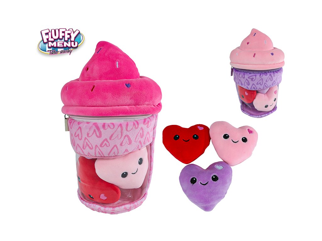 Fluffy Menu zmrzlina plyšová 26 cm s plyšovými srdíčky 3 ks.