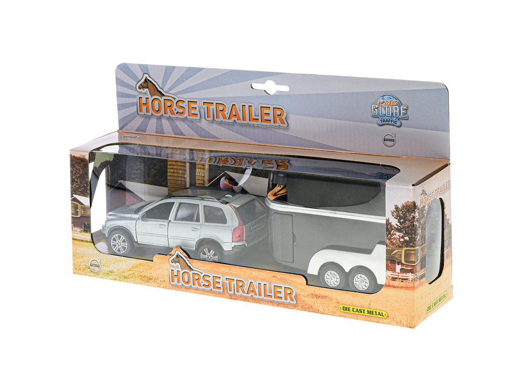 Kids Globe Traffic Volvo XC90 14 cm kov zpětný chod s přívěsem pro koně v krabičce