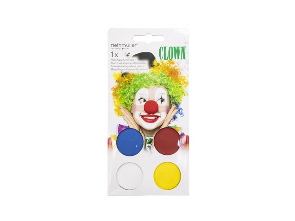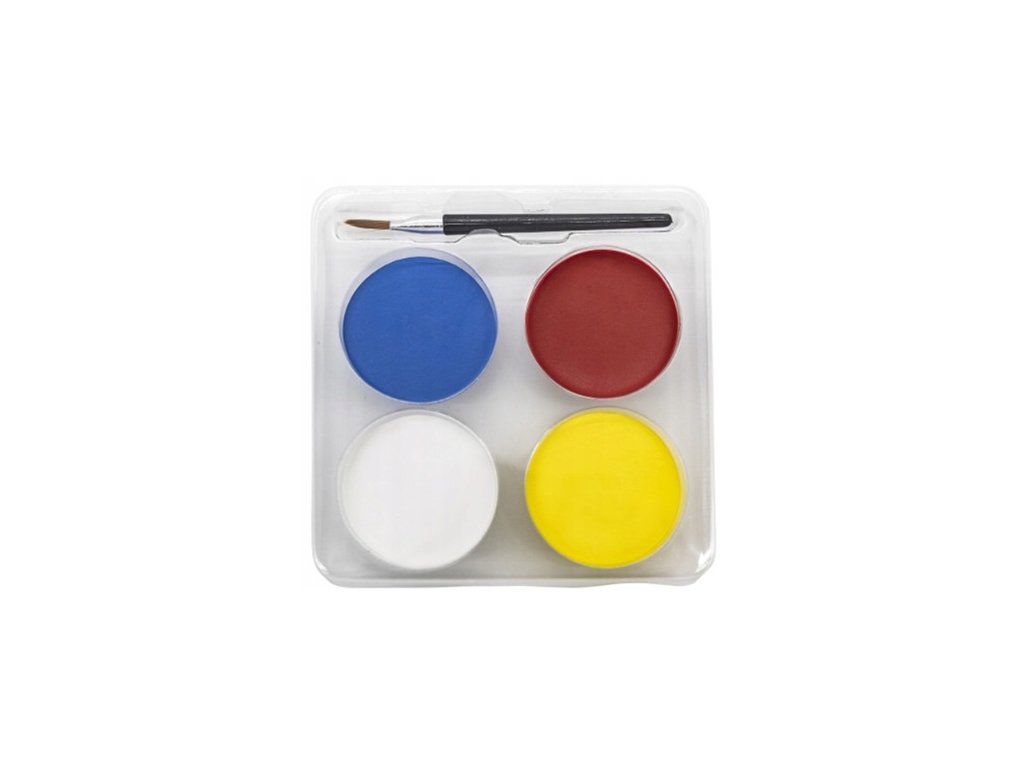 Souprava barev na obličej obsahuje: 1 štětec, 4 barvy x 3,5g (modrá, červená, bílá, žlutá).