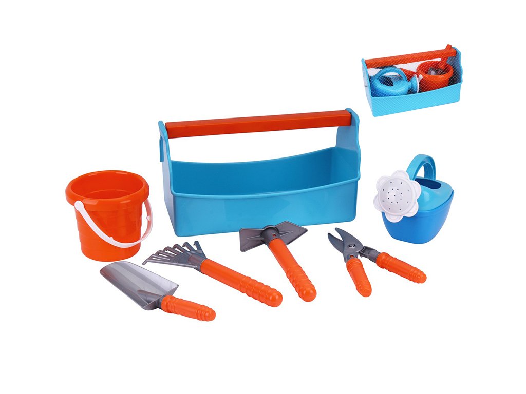 Nářadí zahradní 4 ks s kbelíkem a konvičkou v přepravce 30x14 cm v síťce