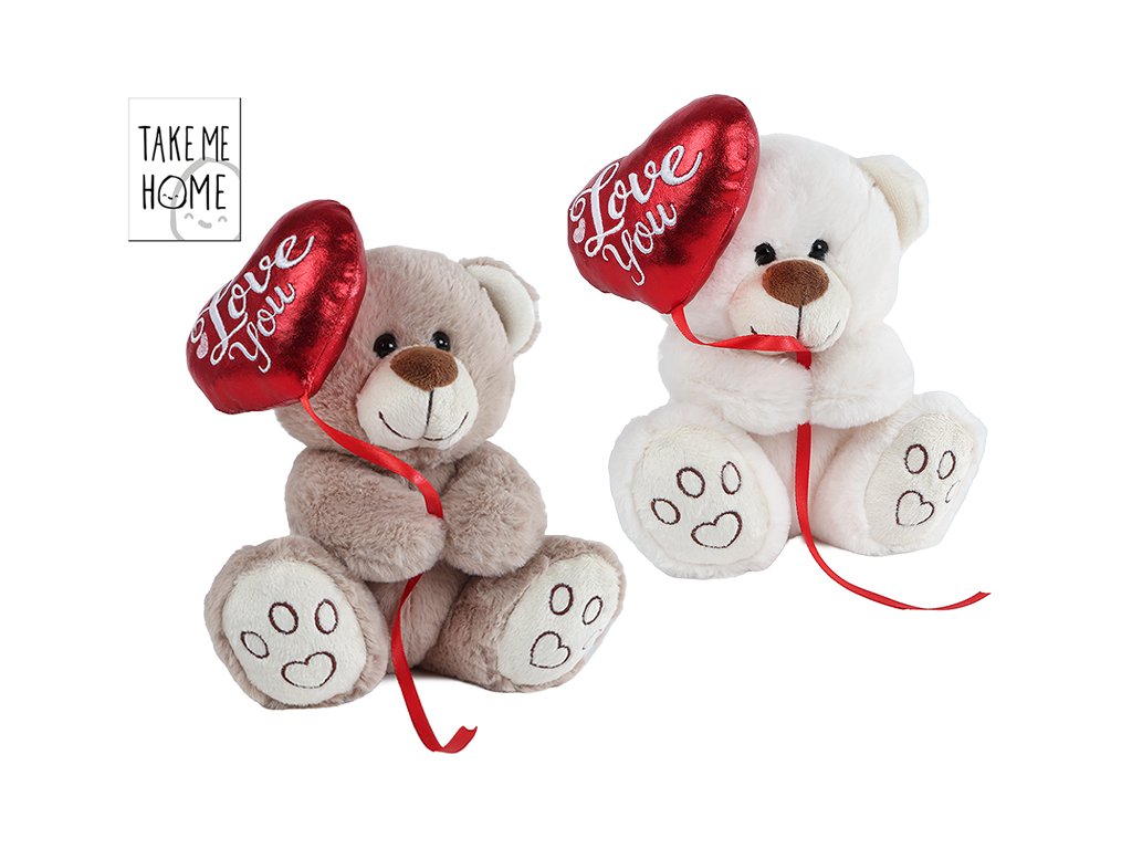 Take Me Home medvěd plyšový 20 cm sedící s plyšovým balónkem ve tvaru srdce
