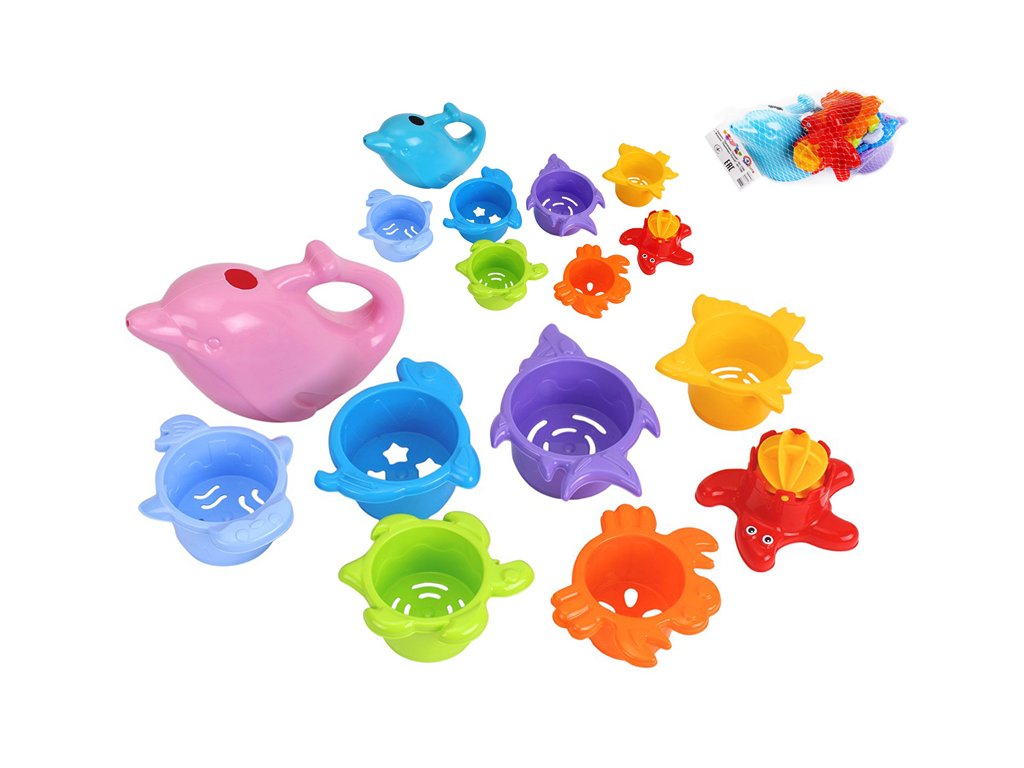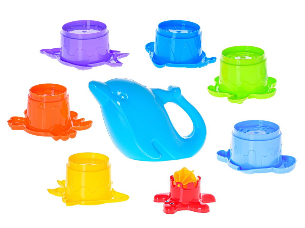 Pyramida mořská zvířátka 7 pater 28 cm s konvičkou ve tvaru delfína
