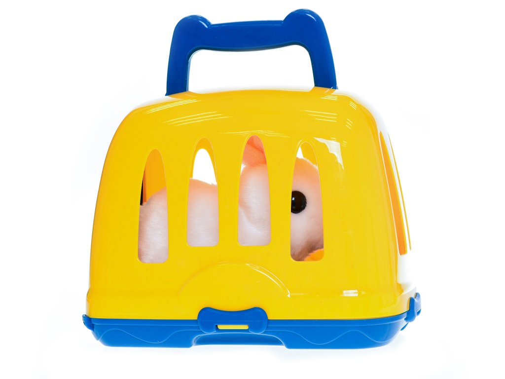 Králíček plyšový 17 cm na baterie se zvukem skákající s přepravkou v krabičce.