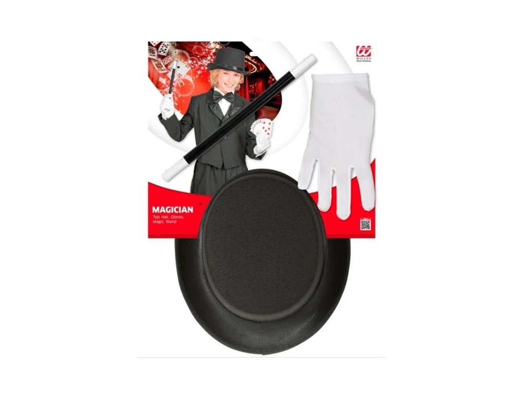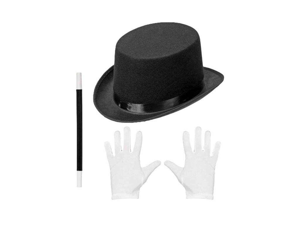 Sada obsahuje: bílé rukavice, černý cylindr - obvod cca 55 cm a kouzelnickou hůlku.
