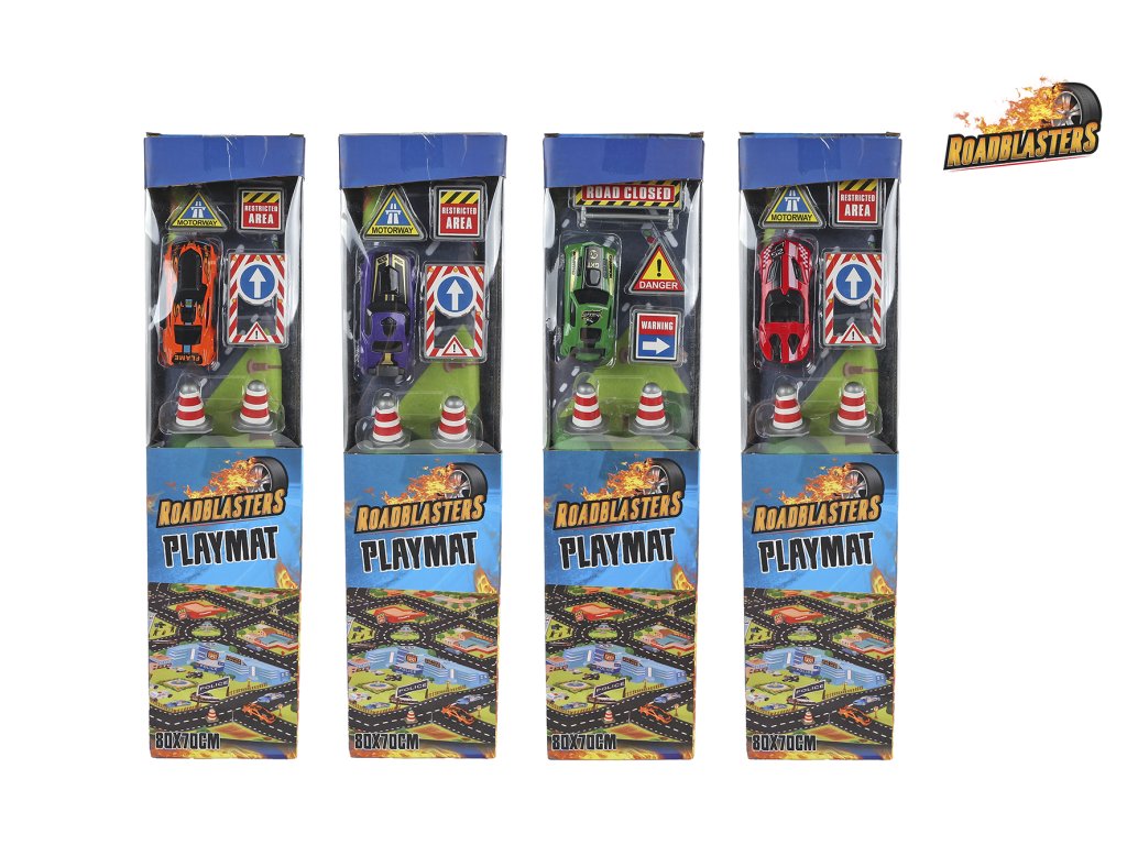 Roadblasters koberec dopravní 80 x 70 cm s doplňky v krabičce.