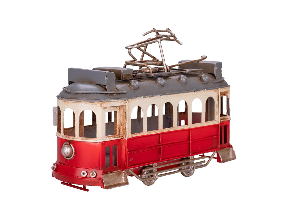 Tramvaj červená 16,5 cm kov volný chod v krabičce.