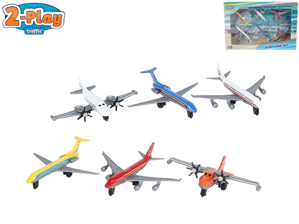 2-Play Traffic letadlo dopravní 7-10,5 cm kov volný chod 6 ks v krabičce.