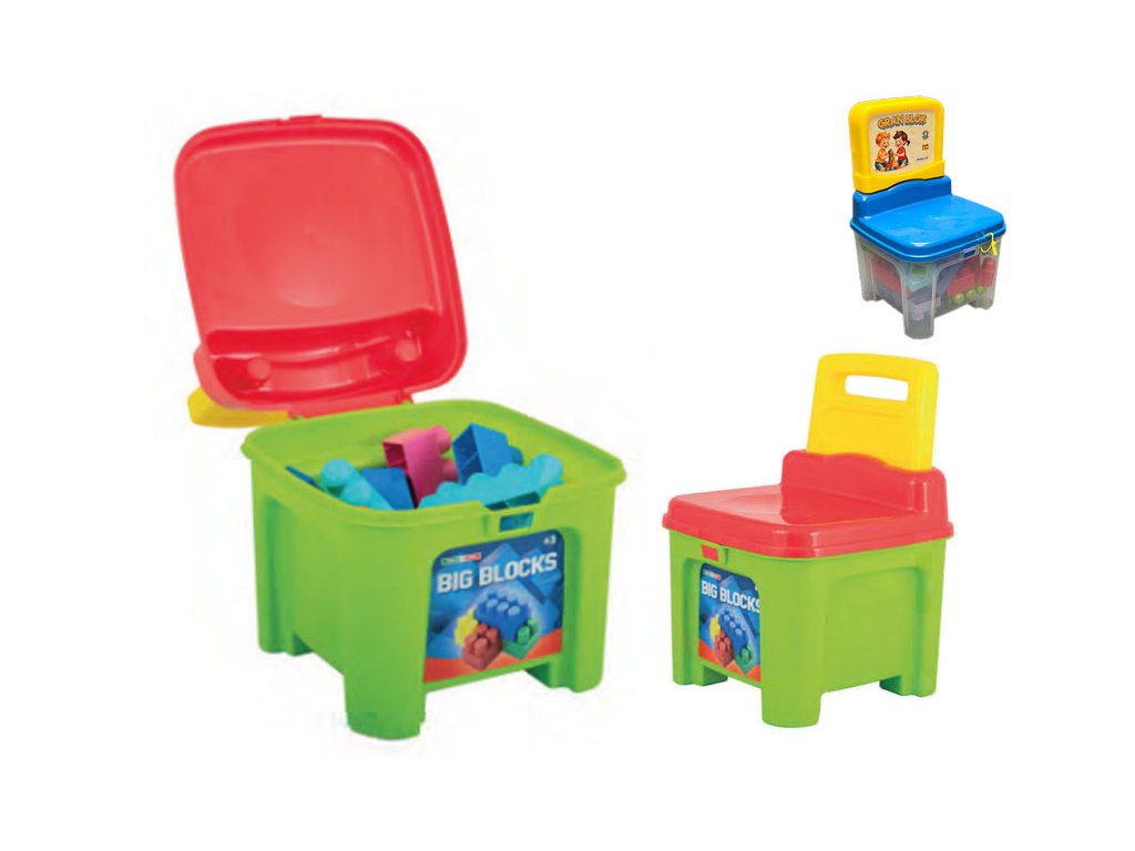 Plastová židlička se stavebními kostkami 22 ks.