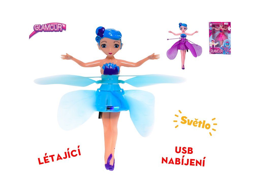Glamour panenka víla 19cm na baterie svítící reagující na pohyb ruky s USB