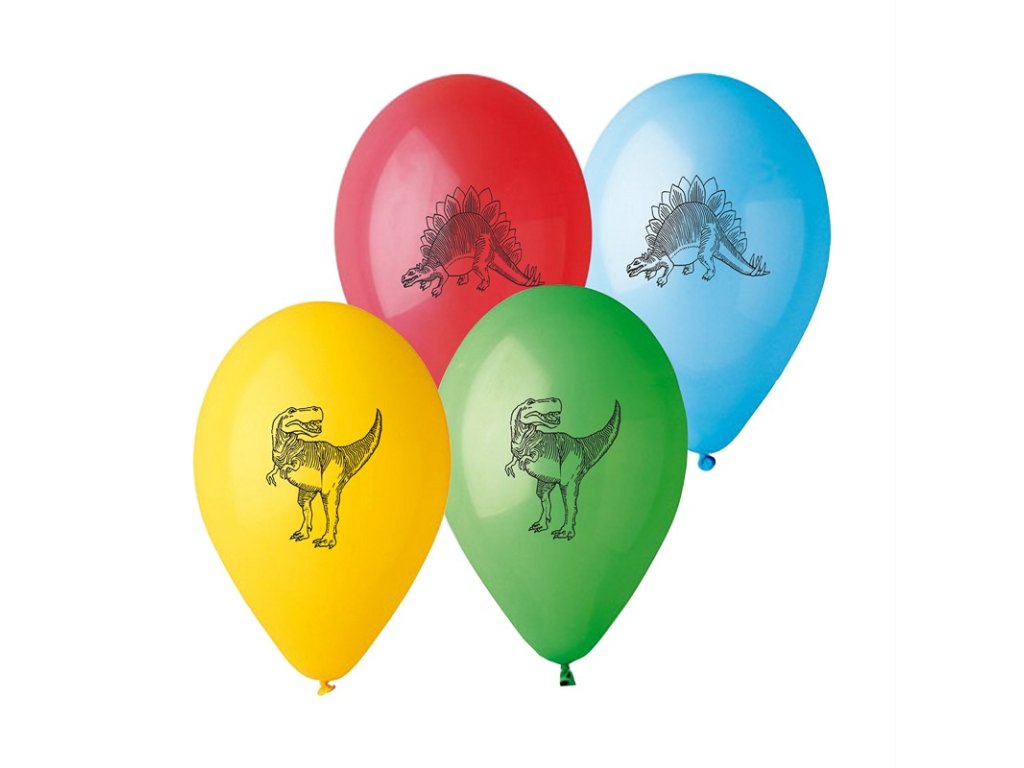 100 ks pastelových nafukovacích balónků v mixu barev s potiskem dinosaurů o průměru 26 cm.