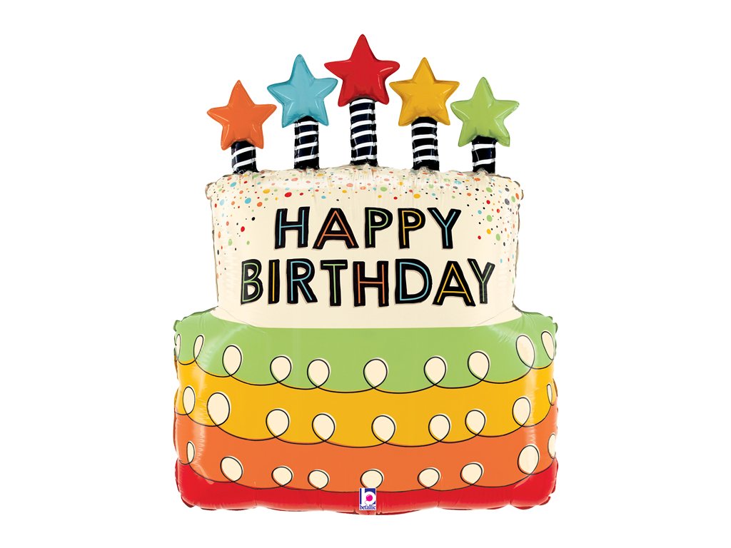 Foliový balónek ve tvaru dortu s nápisem Happy Birthday!