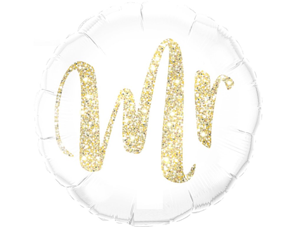 Foliový balónek ve tvaru kruhu v bílé barvě s potiskem "Mr".