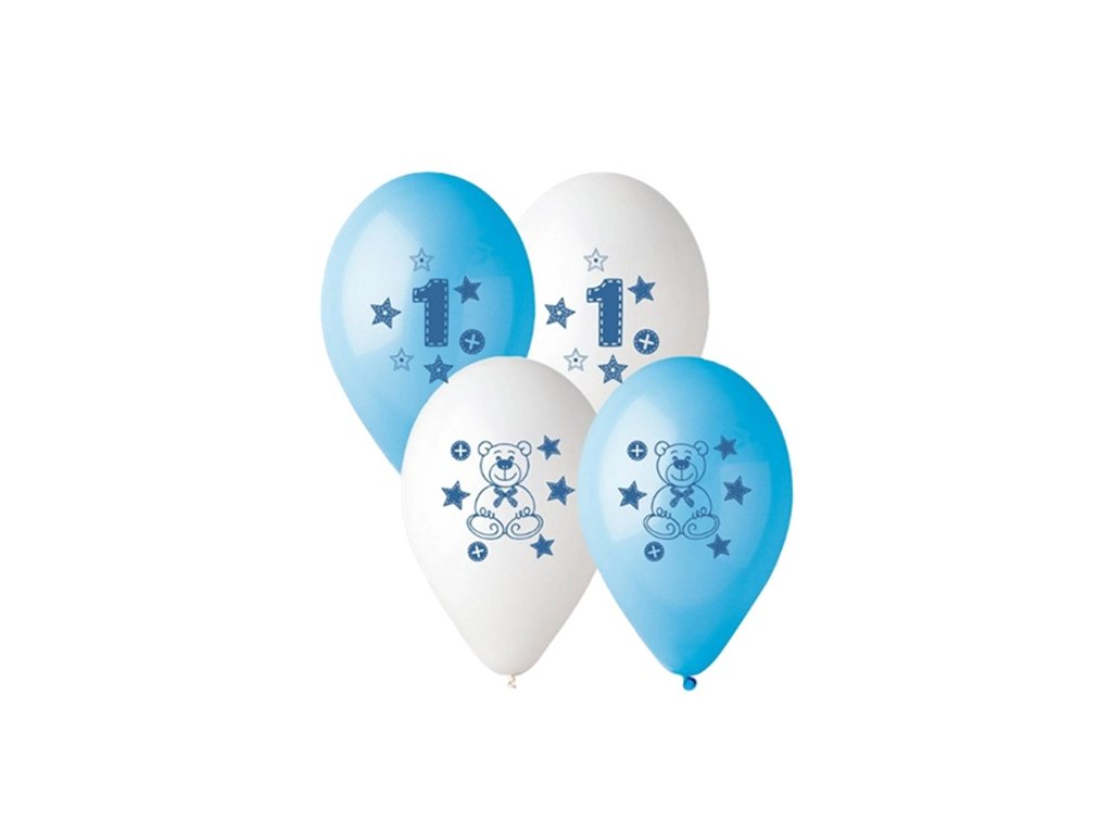 Latexový balonek s oboustranným potiskem. Latexový modrý a bílý balonek je nádherná dekorace k prvnímu roku narození Vašeho děťátka.