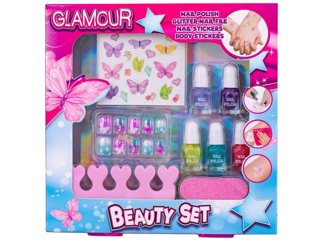 Glamour sada krásy s laky na nehty, pilníkem a nálepkami na tělo a nehty