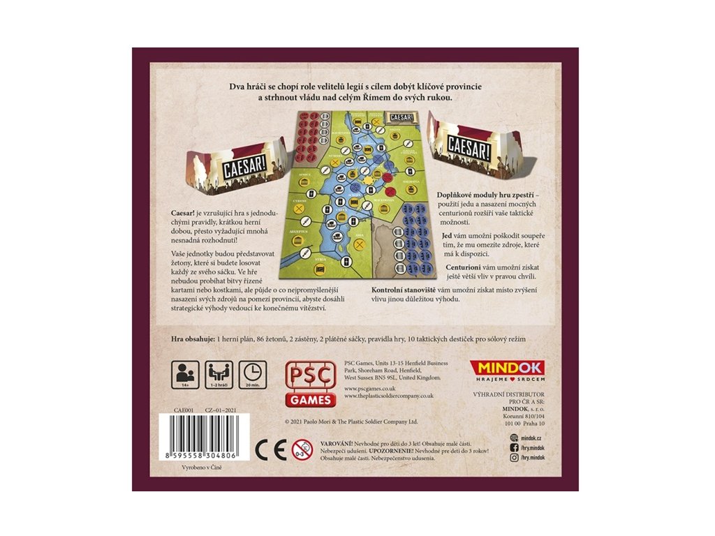 Dva hráči se chopí role velitelů legií s cílem dobýt klíčové provincie a strhnout vládu nad celým Římem do svých rukou. Caesar! je vzrušující hra s jednoduchými pravidly, krátkou herní dobou, přesto vyžadující mnohá nesnadná rozhodnutí!