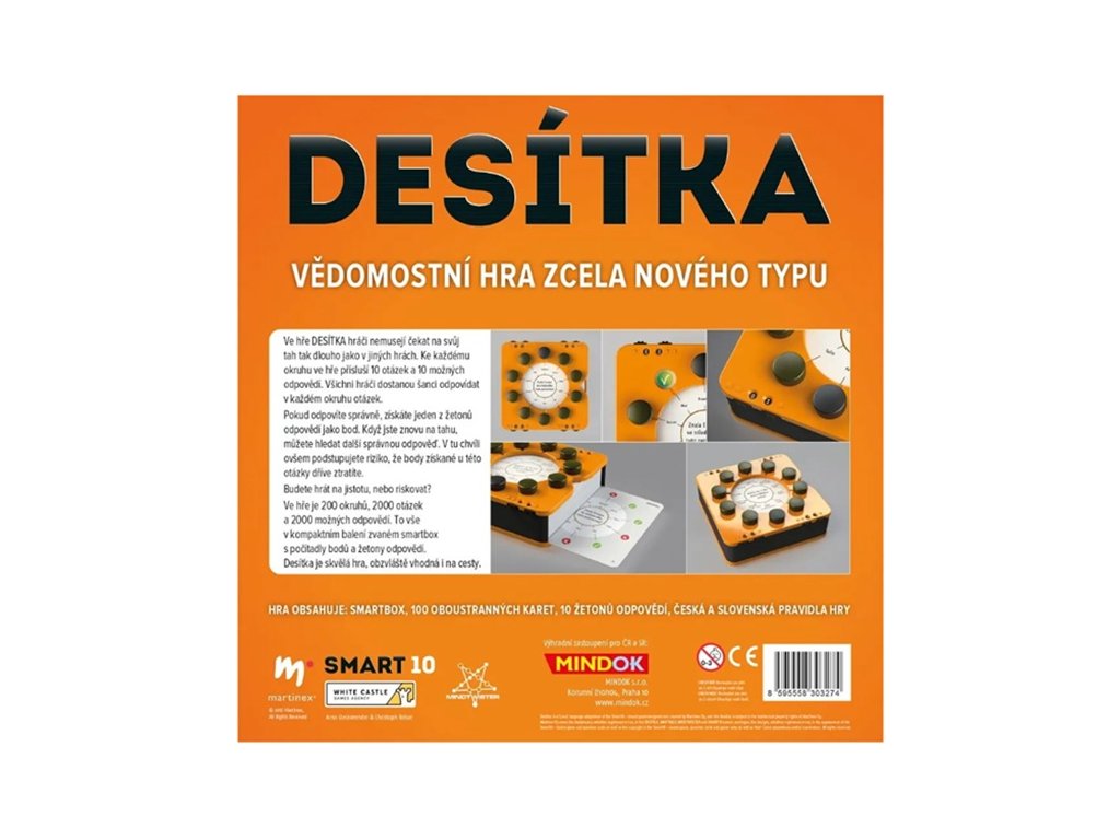 To vše v kompaktním balení zvaném smartbox s počítadly bodů a žetony odpovědí. Desítka je skvělá hra, obzvláště vhodná i na cesty.