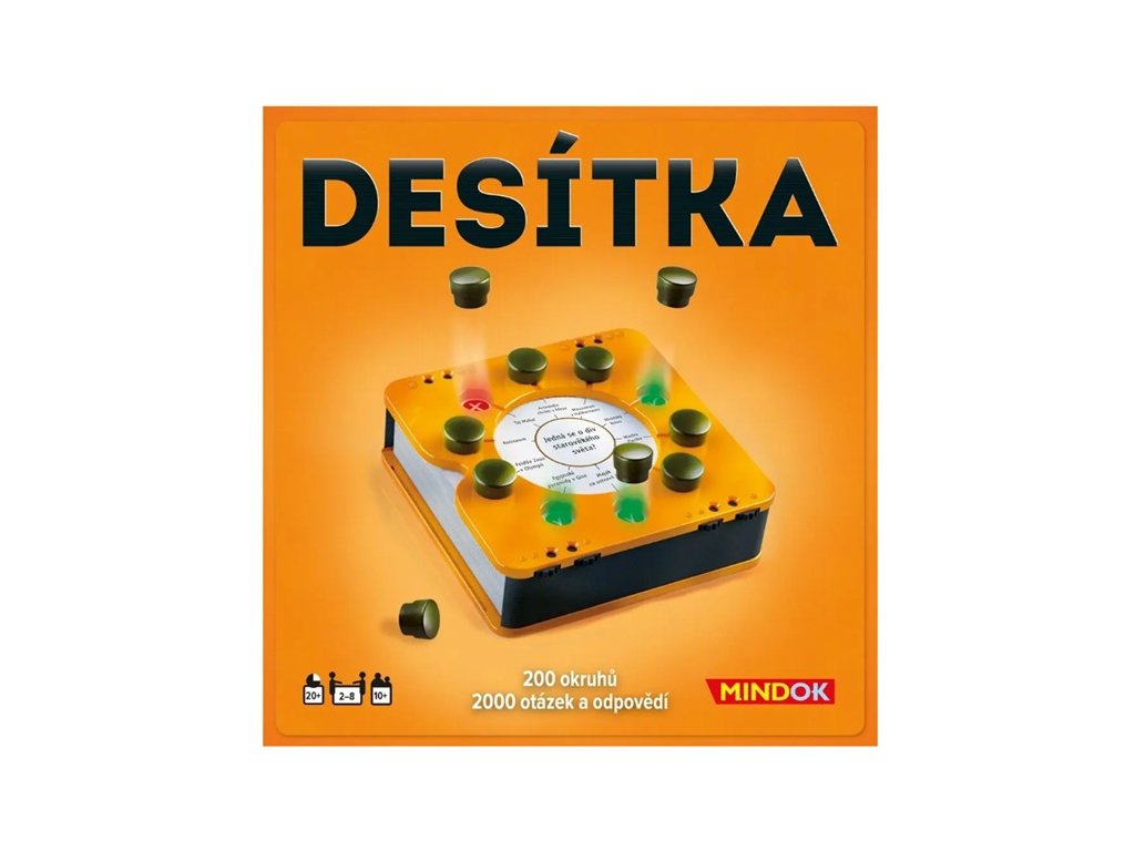 Ve hře DESÍTKA hráči nemusejí čekat na svůj tah tak dlouho jako v jiných hrách. Ke každému okruhu ve hře přísluší 10 otázek a 10 možných odpovědí. Všichni hráči dostanou šanci odpovídat v každém okruhu otázek. Pokud odpovíte správně, získáte jeden z žetonů odpovědí jako bod.
