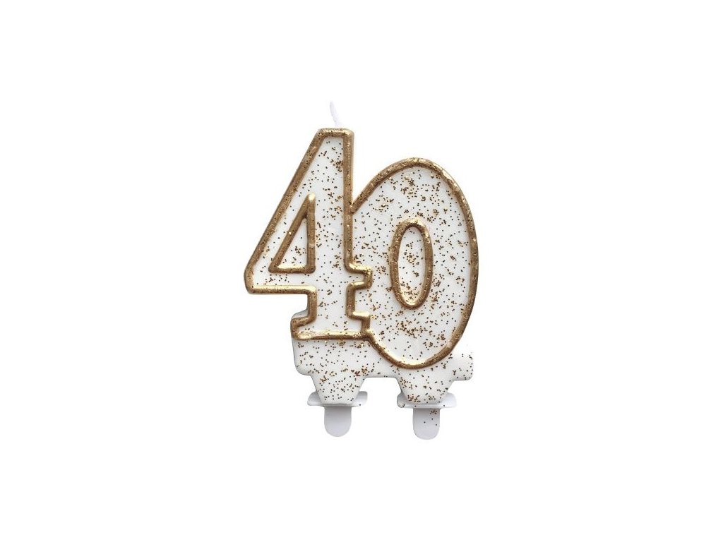 Svíčka číslo 40 zlatý obrys s glitry 8 cm