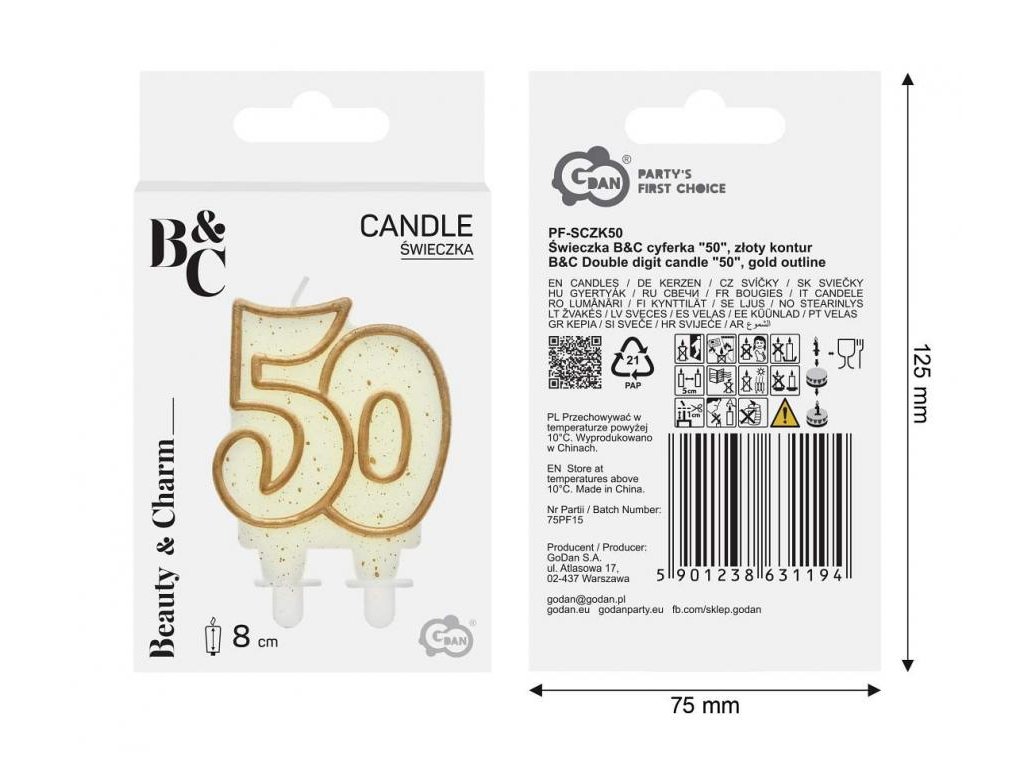 Svíčka dortová číslo 50 zlaté
