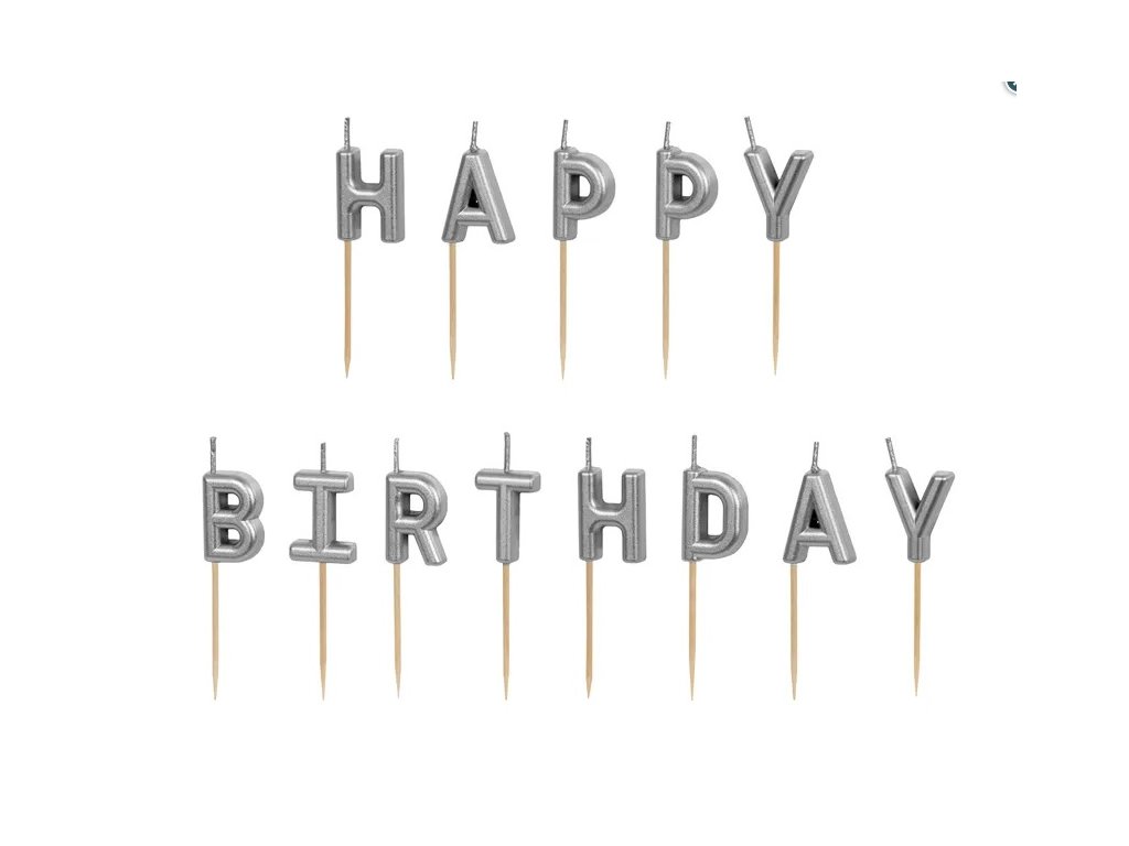 Svíčky "HAPPY BIRTHDAY" stříbrné