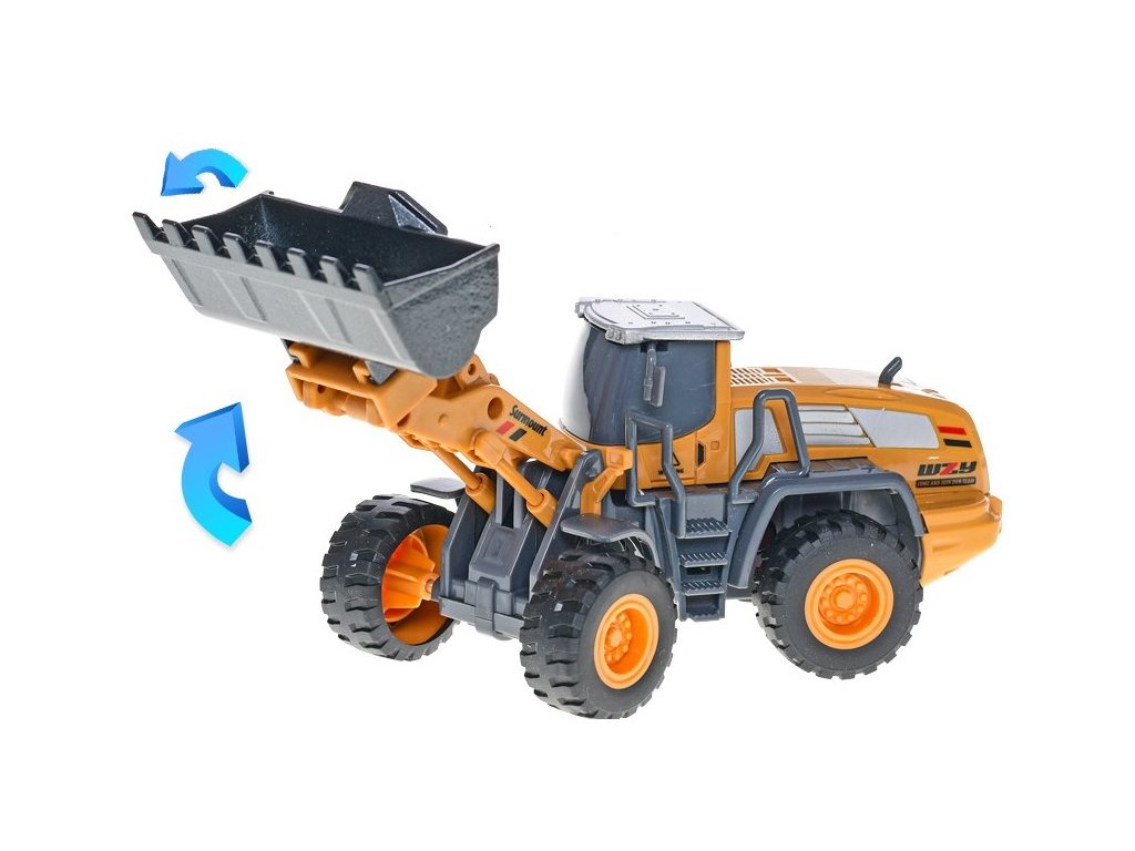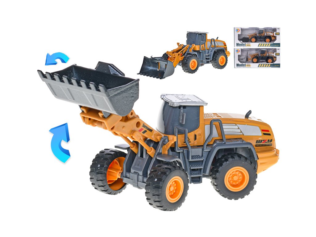 Vozidlo stavební 20 cm na setrvačník s kovovými komponenty.