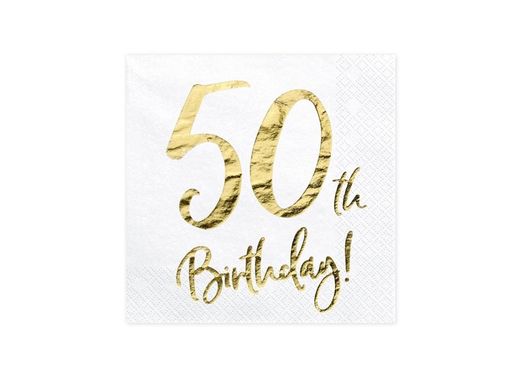 Bílé 3-vrstvé ubrousky se zlatým nápisem k oslavě jubilejních 50. narozenin.