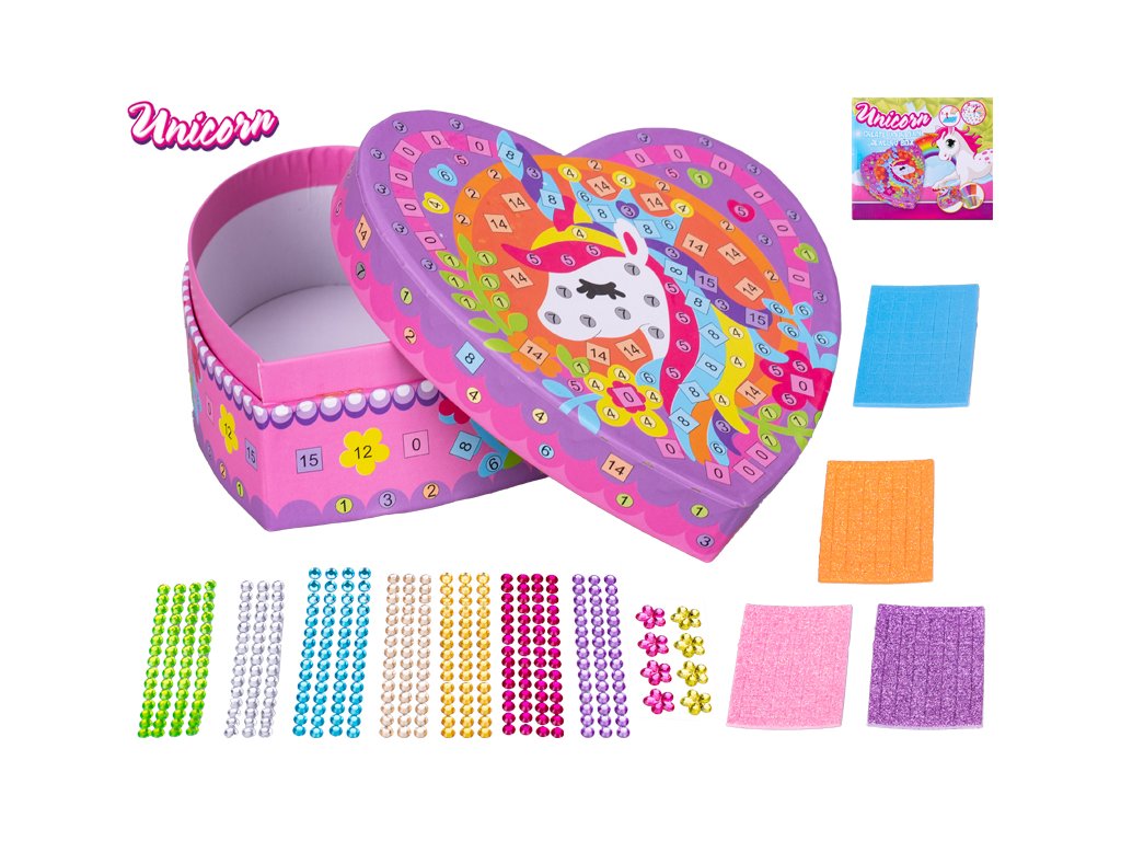 UNICORN sada - lepení barevných kamínků na šperkovnici 13 x 12,5 cm