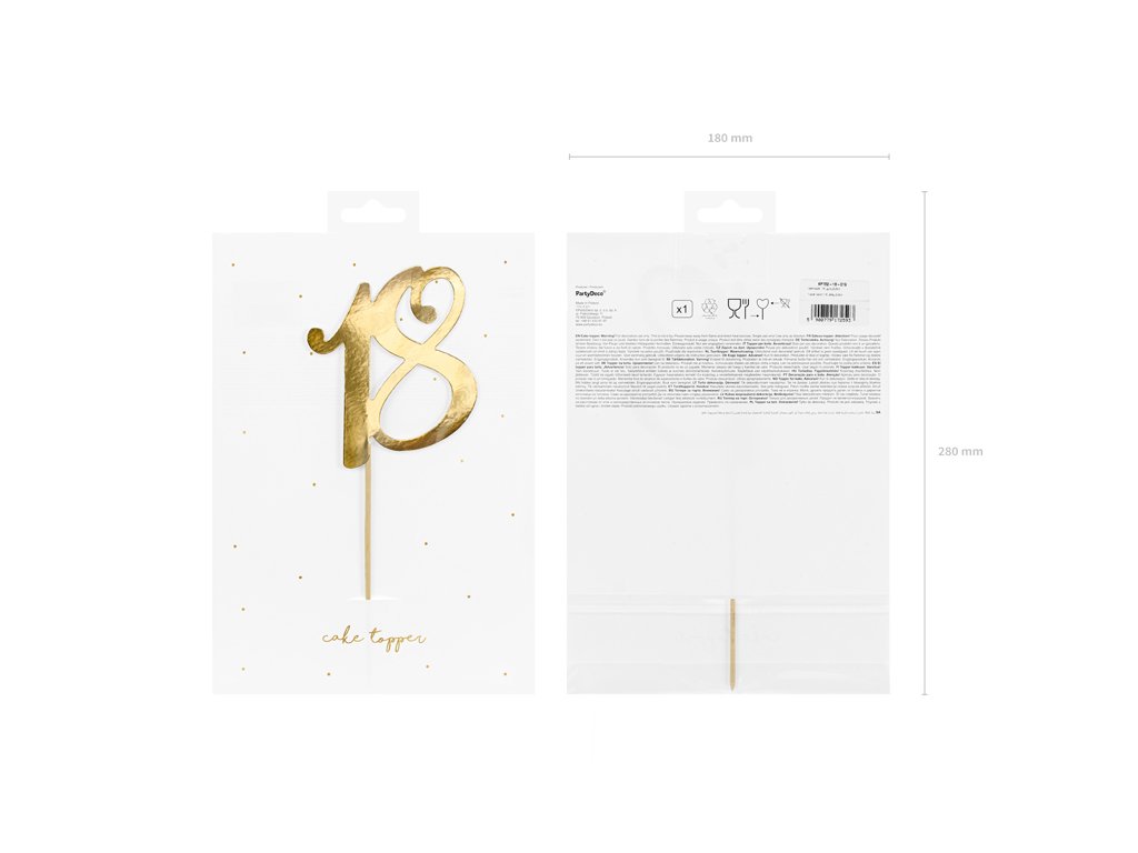 Dortová ozdoba "18" zlatá, 20,5 cm